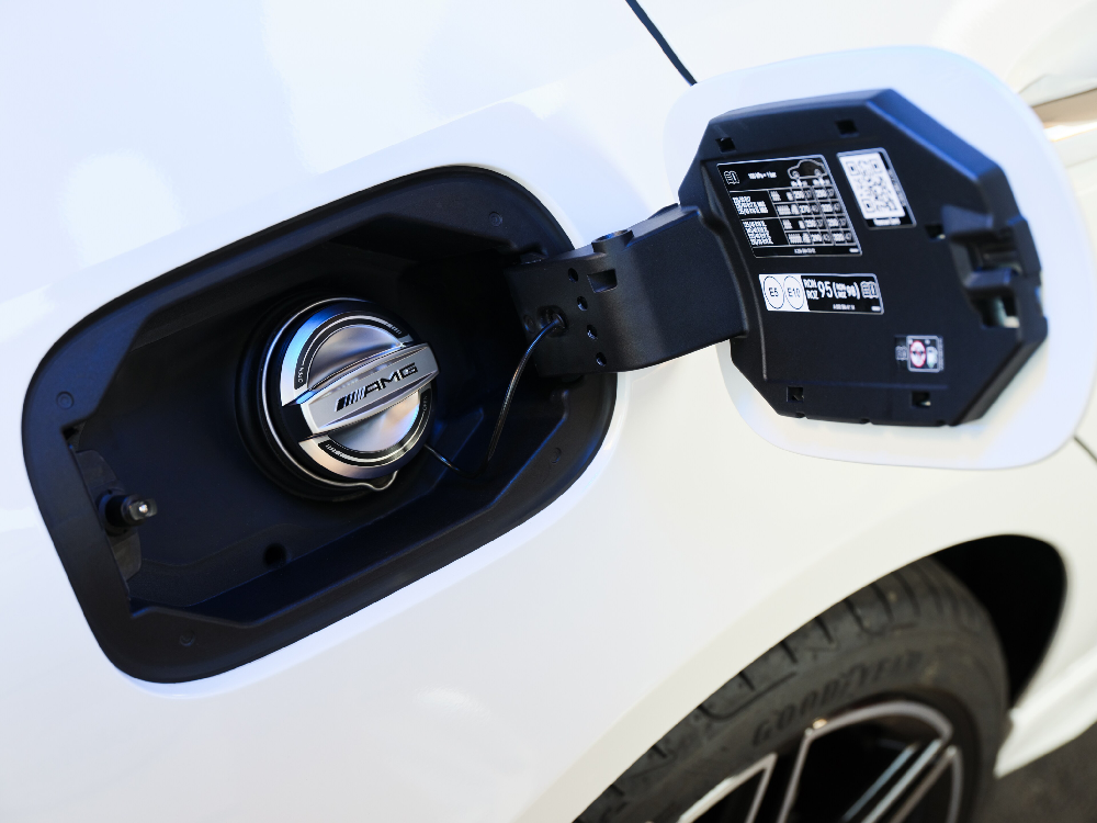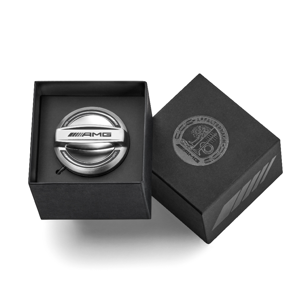 Korek wlewu paliwa wykonany z wysokiej jakości materiałów z połyskiem typu matowy chrom i z logo AMG.