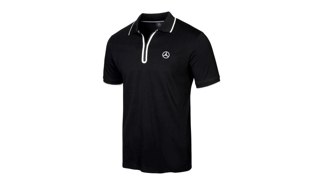 Modnie w czasie wolnym: męska koszulka polo w jakości single jersey charakteryzuje się przyjemnym komfortem noszenia i stylowym wyglądem dzięki obrotowemu zamkowi błyskawicznemu, czarnemu suwakowi autolock z gwiazdą 3D oraz zamkowi błyskawicznemu z przodu z modnym wiązaniem. Wzorzysty dekolt i rozcięcie, kołnierzyk i mankiety z pojedynczym ściągaczem z kontrastowymi paskami, gwiazda Mercedesa wyszywana na piersi, a także wydłużony tył dopełniają wyrafinowany wygląd koszulki w nowoczesnym, dopasowanym kroju.