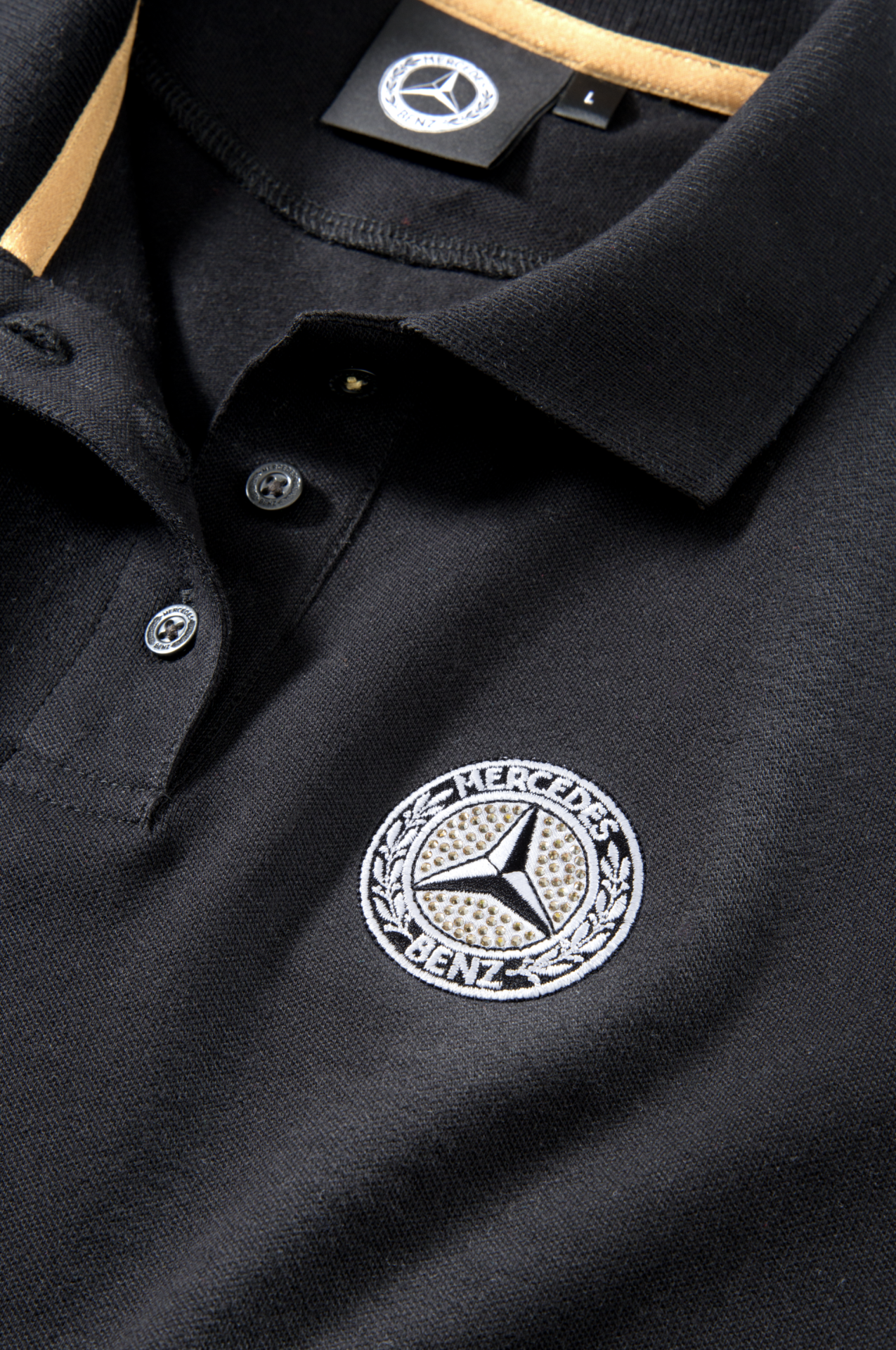 Mercedes-Benz – Damska koszulka polo | Slim Fit | Czarna ze złotymi detalami